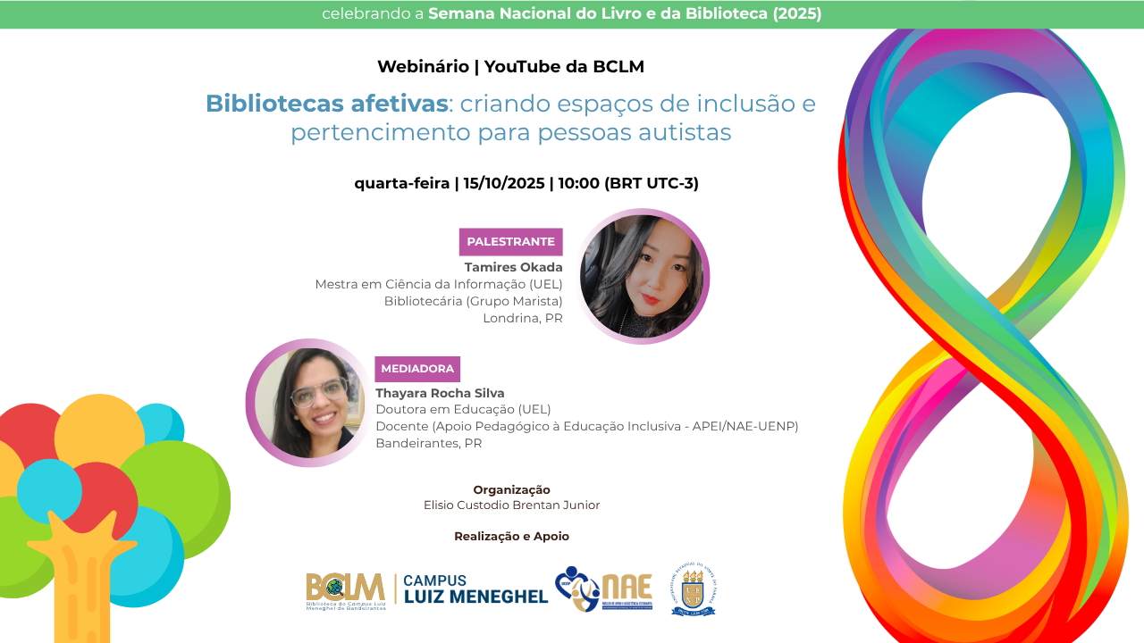 Convidamos pessoas bibliotecárias educadoras, familiares, estudantes, profissionais da informação, demais profissionais que atuam em bibliotecas e entusiastas da causa autista para este debate essencial.