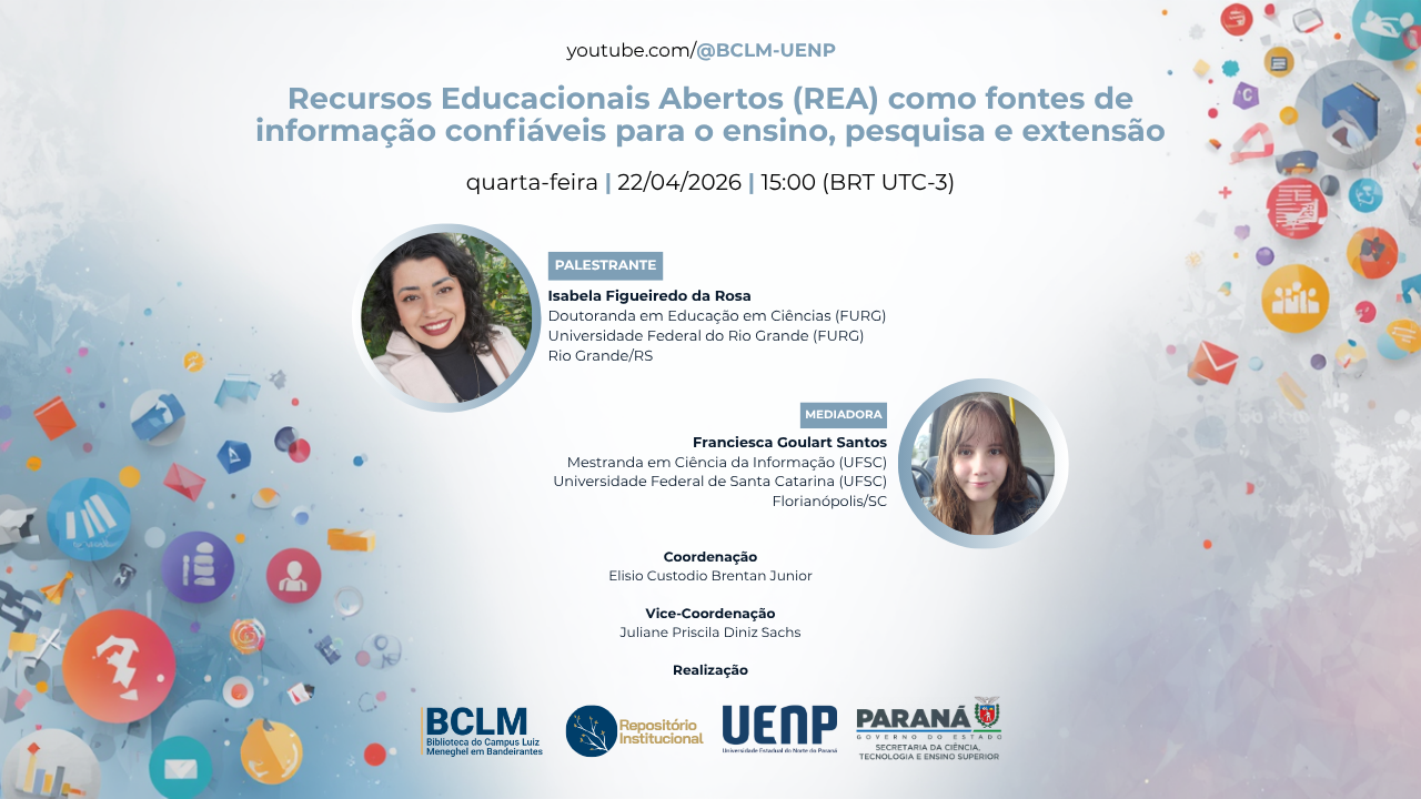 Junte-se a nós para compreender como os Recursos Educacionais Abertos podem se consolidar como fontes estratégicas de informação, ampliando possibilidades para o ensino, fortalecendo a pesquisa e promovendo uma extensão universitária mais conectada com os desafios do presente.